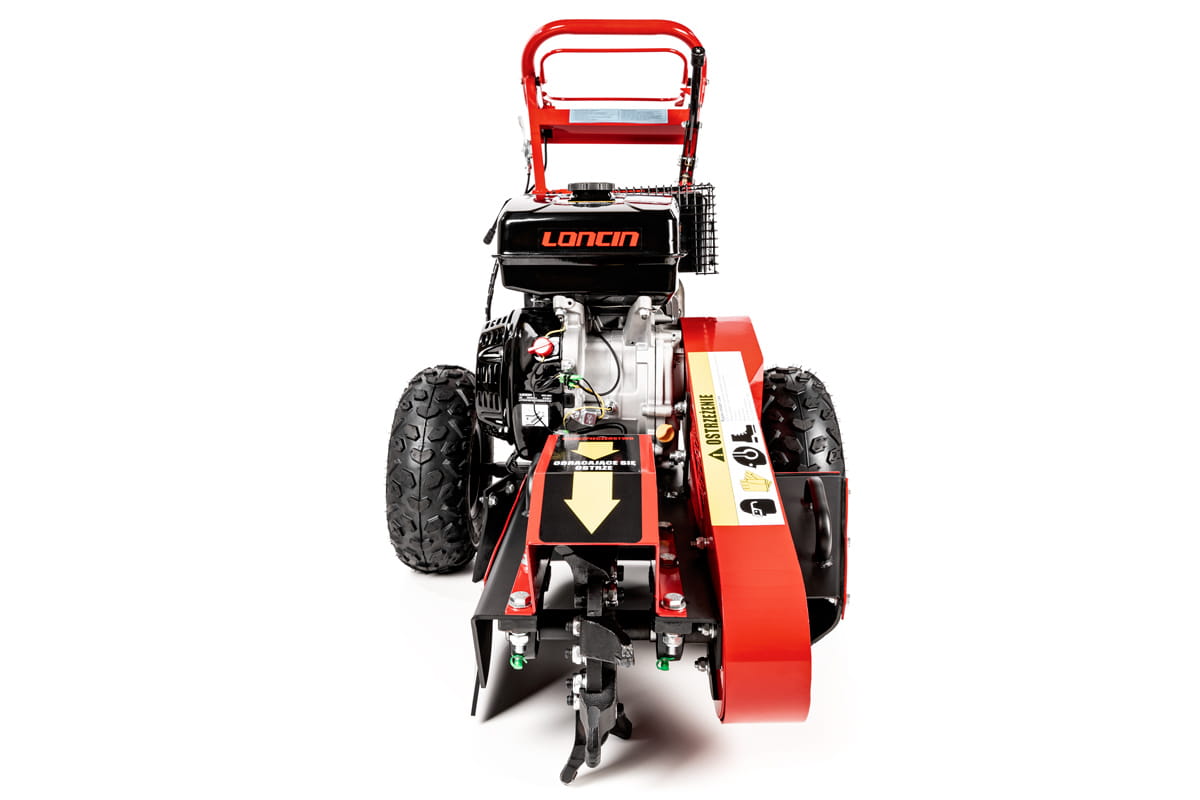 CEDRUS Frez do pni FR01 to nowoczesne, wysokowydajne urządzenie przeznaczone do efektywnego usuwania pni drzew. Wyposażony w silnik Loncin G420F o pojemności 420 cm³ i mocy 9,0 kW, ten frez gwarantuje niezawodność i znaczące osiągi. Potężny silnik pracuje przy 3600 obr./min, co zapewnia dynamiczną pracę i usprawnia usuwanie nawet najbardziej opornych pni. Maszyna ta charakteryzuje się doskonałą stabilnością i możliwością swobodnego manewrowania, co jest szczególnie ważne w różnorodnych warunkach terenowych.