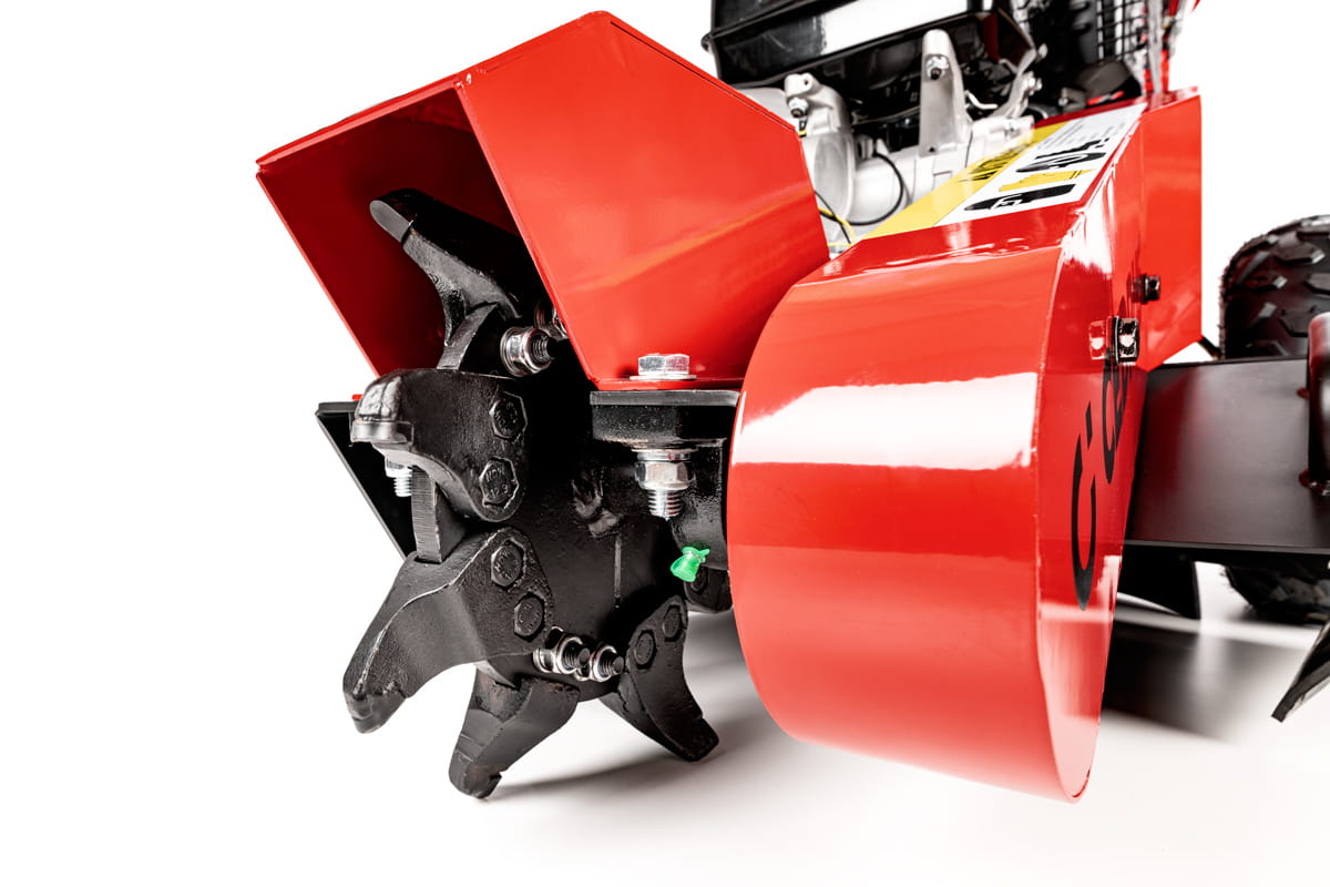 Mechanizm załączania tarczy z pozycji operatora to innowacyjne rozwiązanie, które zwiększa bezpieczeństwo i wygodę obsługi maszyny. Frez działa na paliwo benzynowe, co zapewnia niezależność od źródeł zasilania elektrycznego i umożliwia pracę w każdym miejscu. Pojemność zbiornika paliwa wynosząca 6,5 litra oraz pojemność miski olejowej 1,1 litra umożliwiają długotrwałe użytkowanie bez konieczności częstego uzupełniania.