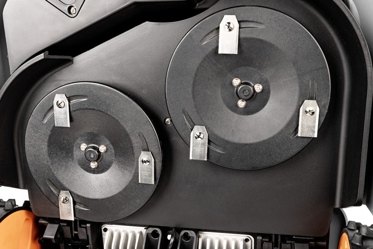 | Szerokość koszenia | podwójna tarcza na każdej 3 obrotowe nożyki; 350 mm |