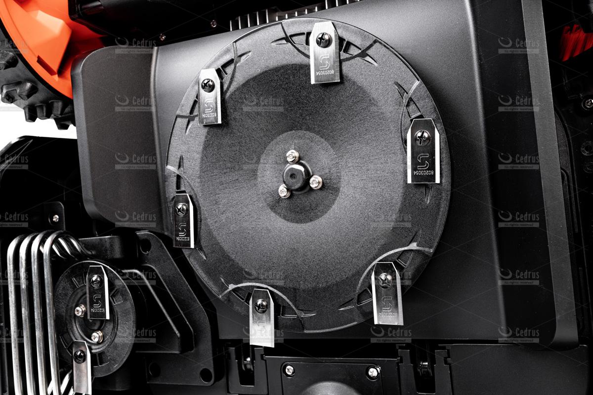 Urządzenie wyposażono w pływającą tarczę tnącą oraz system koszenia z 6 nożami na dysku, co zapewnia dokładne i równomierne przycinanie trawy. Zakres wysokości koszenia wynosi 20–60 mm, dzięki czemu można dopasować efekt koszenia do własnych preferencji.
