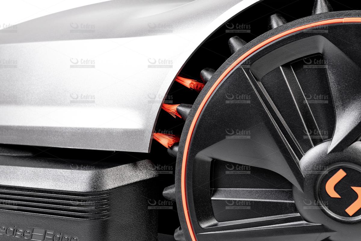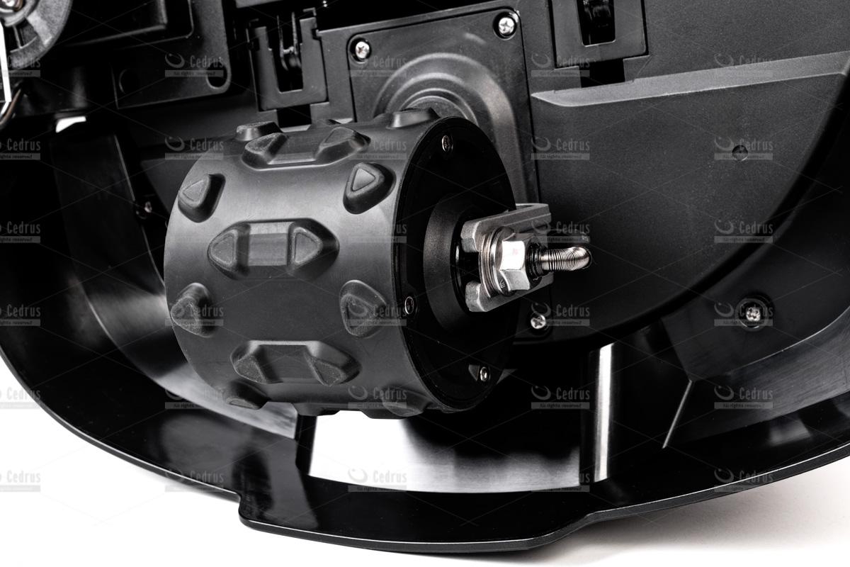 Kosiarka radzi sobie z trudniejszym terenem i pokonuje nachylenia do 60%. Wbudowane systemy bezpieczeństwa, takie jak czujnik podnoszenia, czujnik zderzenia, czujnik deszczu oraz kod PIN, gwarantują bezpieczne użytkowanie oraz ochronę urządzenia.
