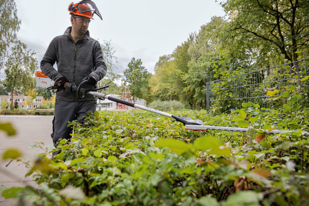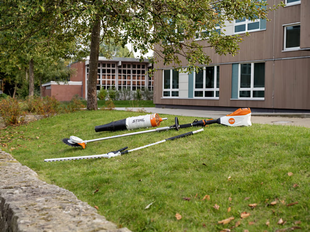 Produkty STIHL posiadają specjalną komorę w obudowie silnika, która umożliwia bezpośrednie umieszczenie akumulatorów AP. Dzięki temu użytkownik zyskuje pełną swobodę ruchów podczas pracy. (zdjęcie jest tylko przykładowe)