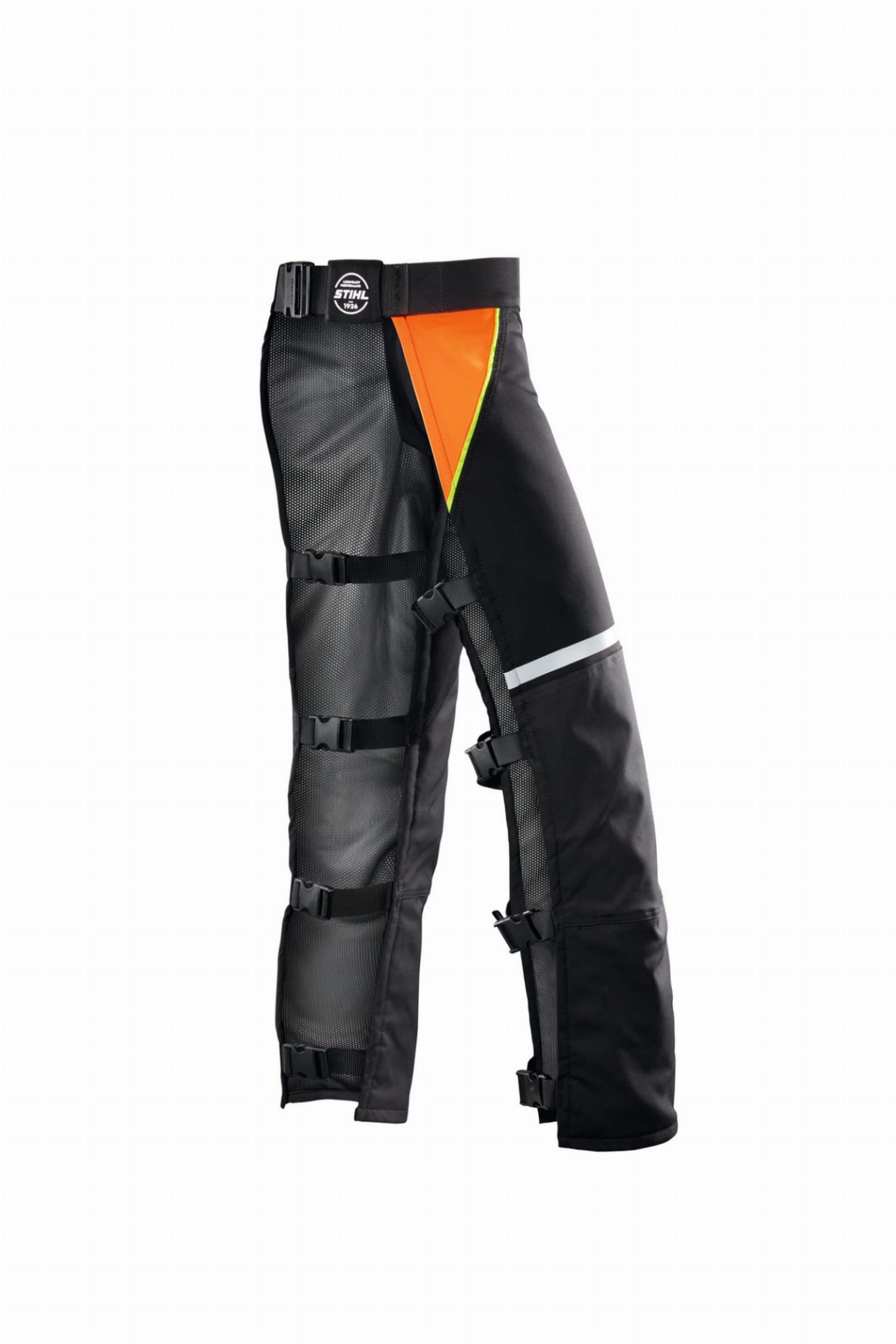 Przednia osłona nóg STIHL FUNCTION Core 270° zapewnia skuteczną ochronę podczas okazjonalnej pracy z pilarką łańcuchową, jednocześnie oferując wygodę noszenia.