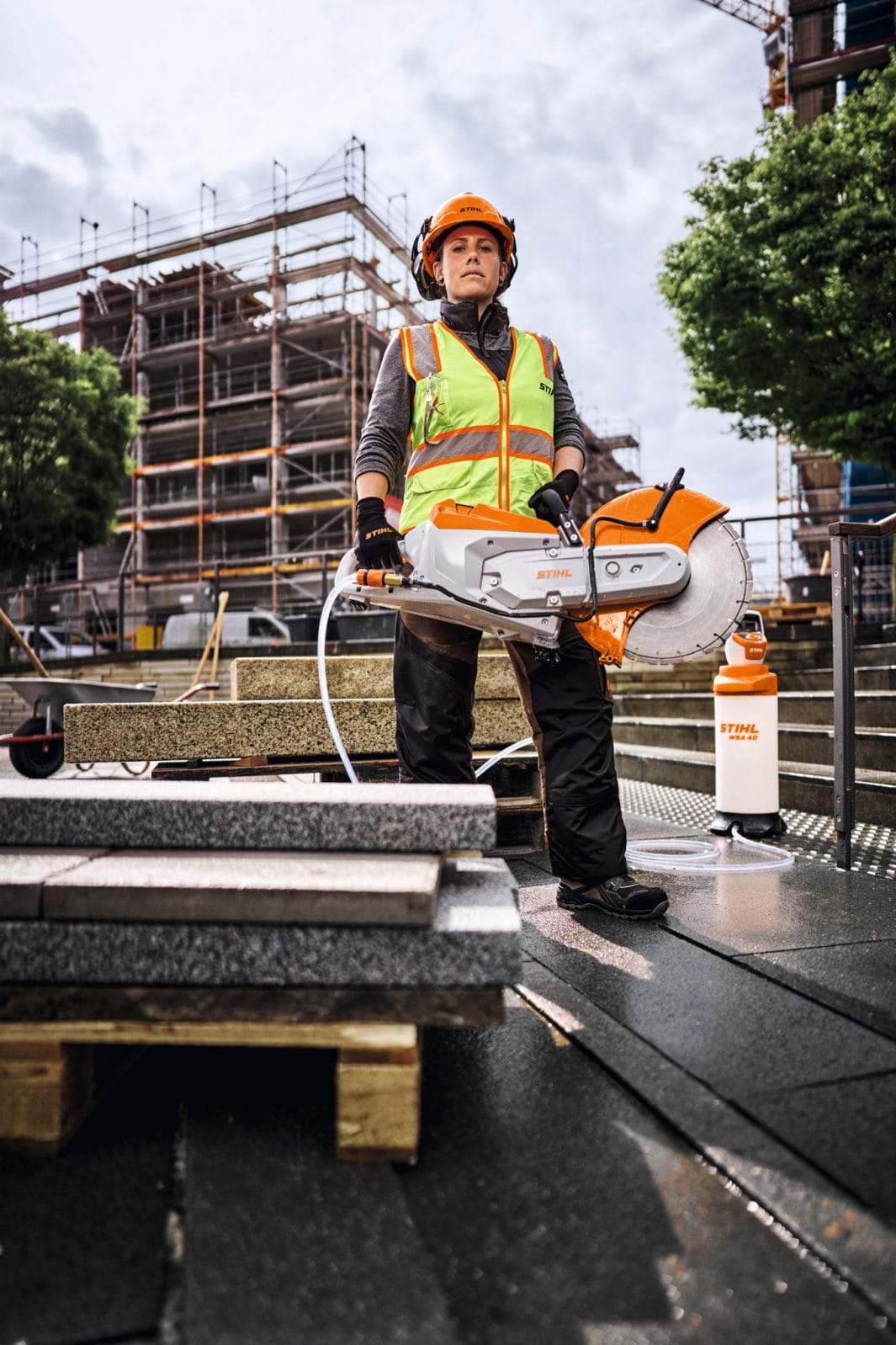 Akumulatorowy zbiornik wodny STIHL WSA 40 to mobilne i automatyczne źródło zasilania wodą dla przecinarek STIHL, idealne na placach budowy bez dostępu do wody.