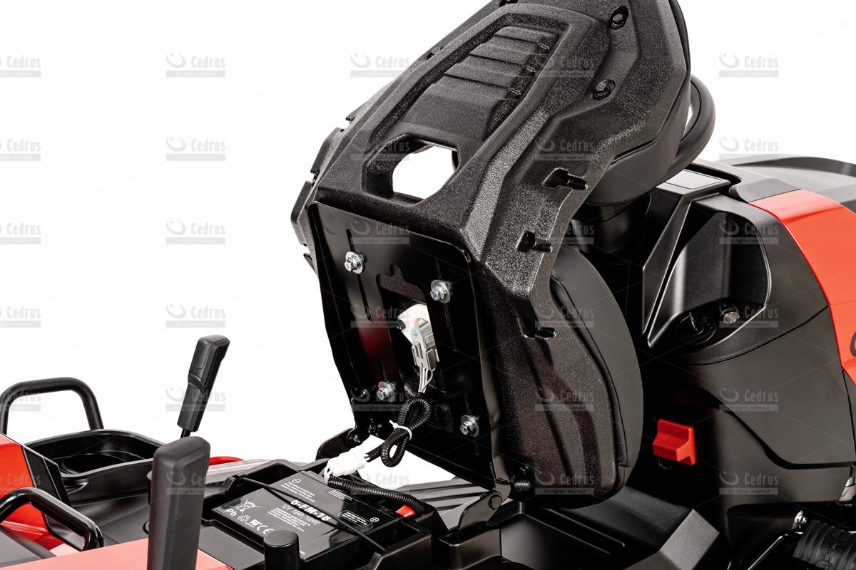 Cedrus C-TRAC-93HC oferuje również pojemny 280-litrowy kosz na trawę z czujnikiem napełnienia, co pozwala na długotrwałą pracę bez częstych przerw na opróżnianie zbiornika. Dodatkową funkcjonalność zapewniają opcja mulczowania oraz możliwość koszenia na biegu wstecznym, co jest niezwykle pomocne w trudnych do osiągnięcia miejscach. Wytrzymały fotel PREMIUM oraz wielofunkcyjny wyświetlacz, który dostarcza wszystkich potrzebnych informacji na bieżąco, podnoszą komfort użytkowania tego traktora.