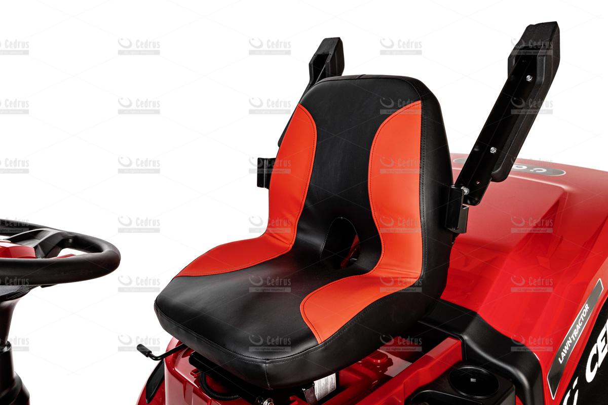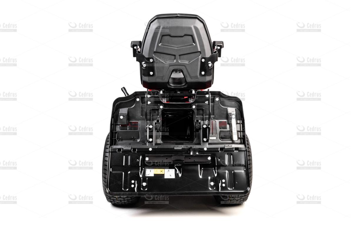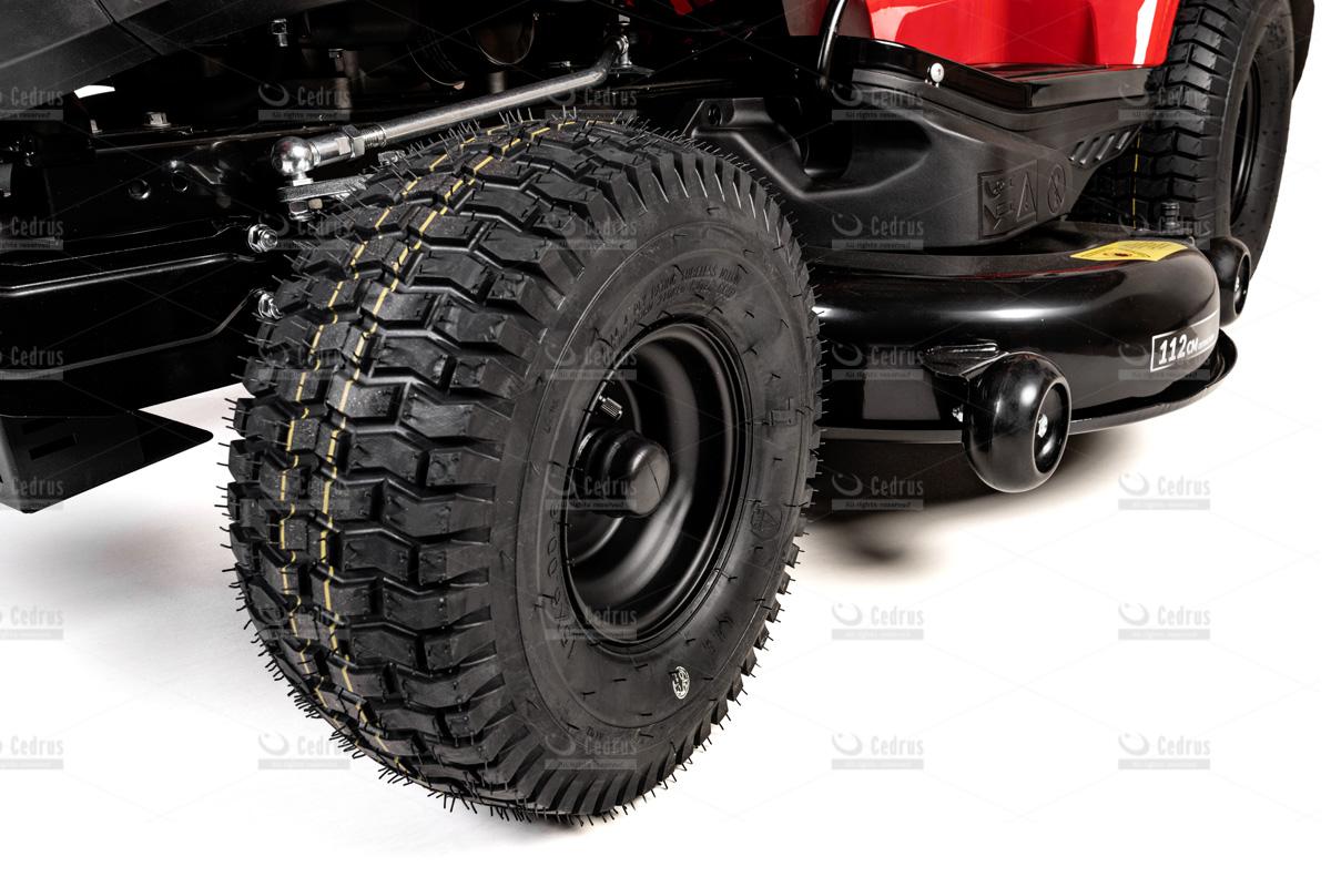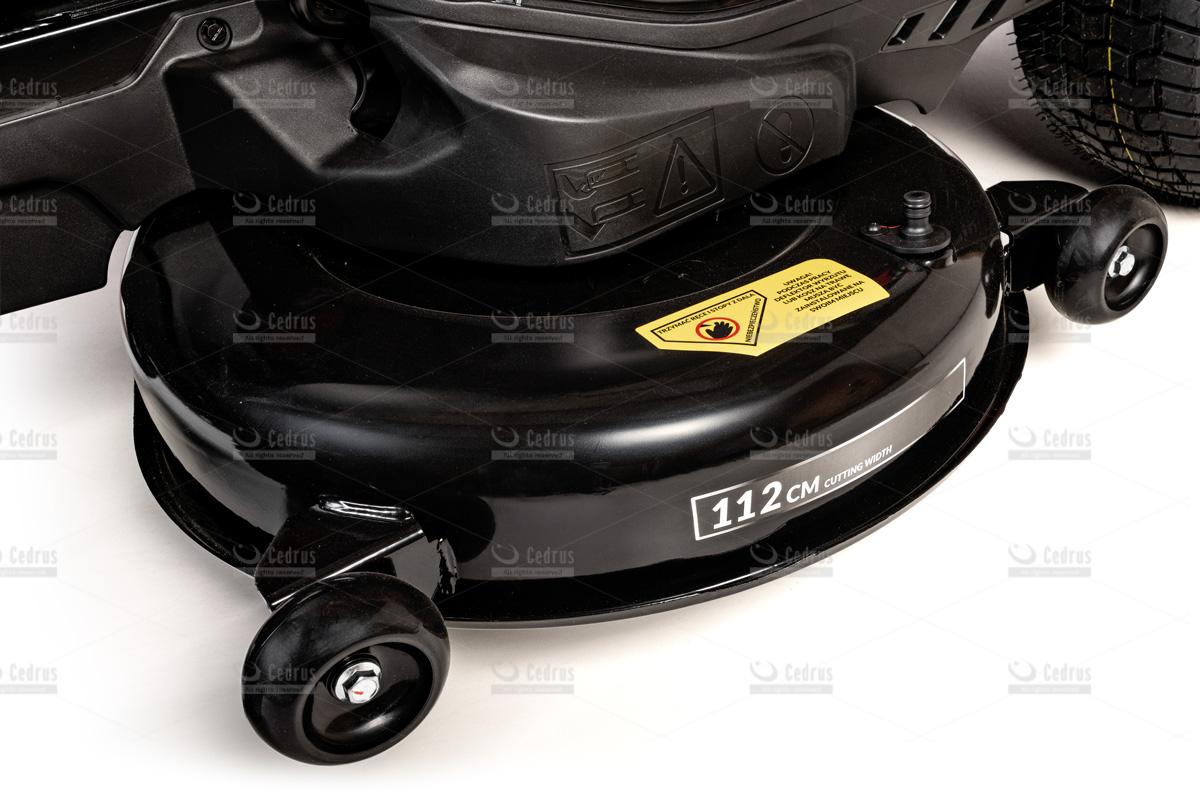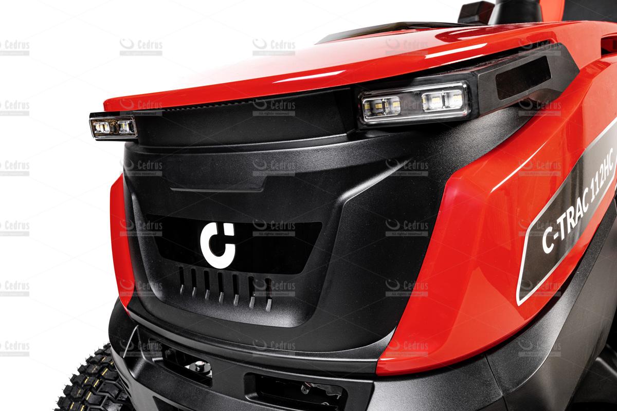 Model C-TRAC-112HC oferuje także funkcję koszenia na biegu wstecznym, oświetlenie LED, wygodny fotel operatora z regulacją oraz elektromagnetyczne załączanie noży. W zestawie znajduje się również wkładka mieląca oraz zaczep do przyczepki, co zwiększa uniwersalność maszyny i pozwala wykorzystać ją do wielu prac ogrodowych.