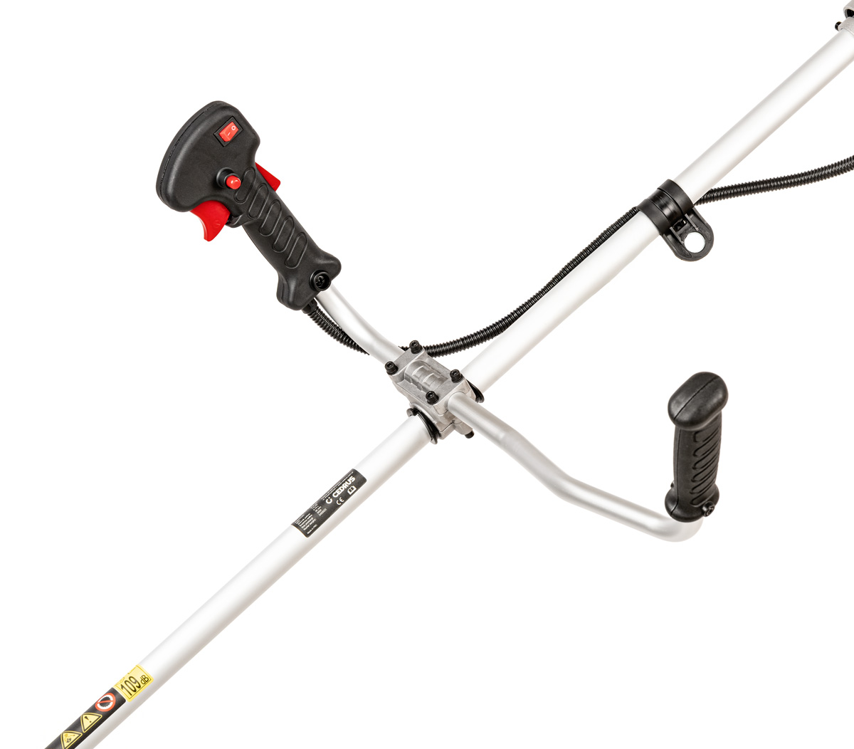 Model posiada półautomatyczną głowicę żyłkową oraz tarczę tnącą 3-zębną, co pozwala na dostosowanie narzędzia do różnych warunków – od lekkiej trawy po bardziej wymagające zarośla.