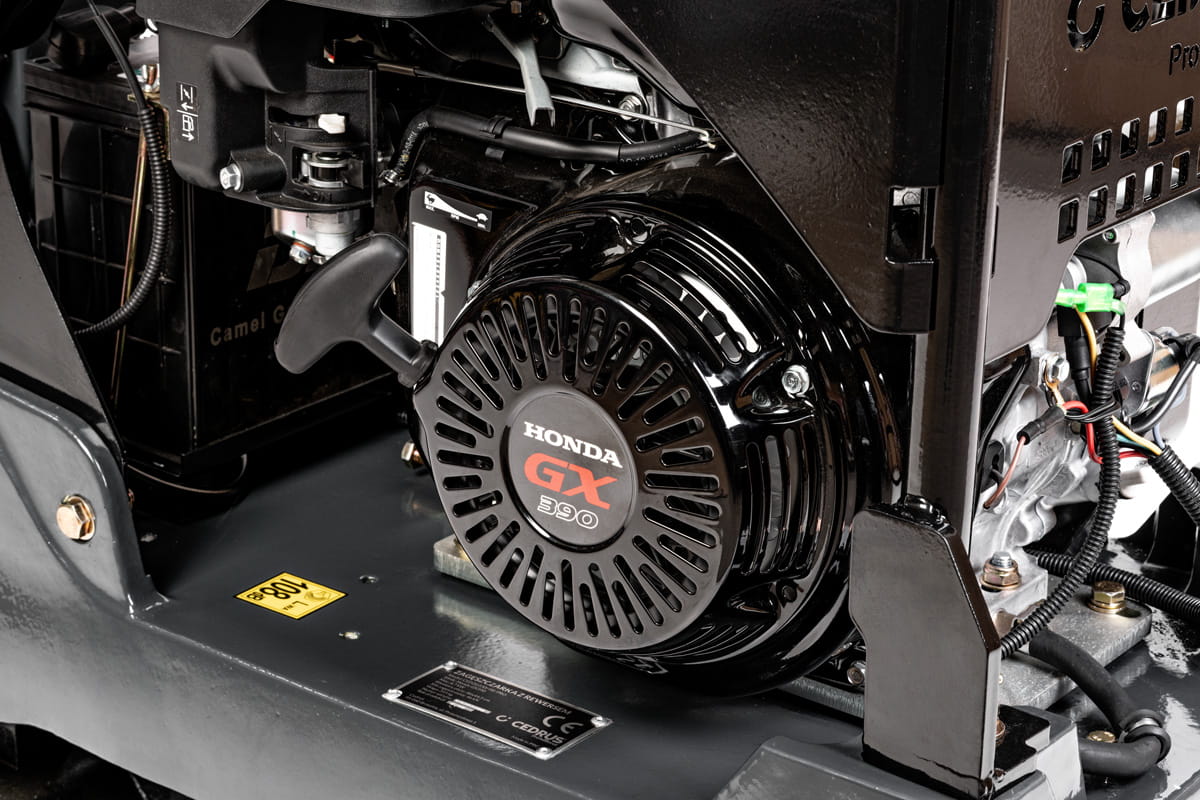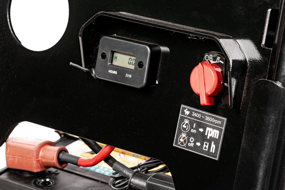 Model CEDZG330HRE-PRO wyposażono również w ramę ochronną silnika, która zabezpiecza jednostkę napędową przed uszkodzeniami mechanicznymi oraz licznik motogodzin, ułatwiający kontrolę serwisów i czasu pracy maszyny.